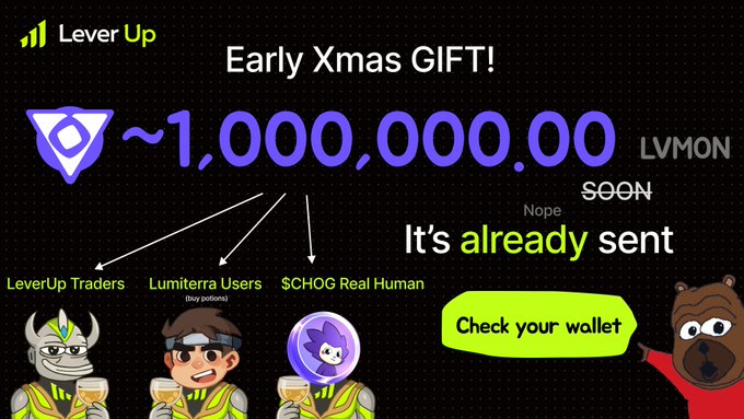 크리스마스 선물 증정 이벤트가 시작되었습니다 🎄 진정한 루미테라 생존자 여러분 ⚡ 지갑에서 $LVMON 보상을 확인하세요! 자세한 내용은 아래를 참조하세요 👇 twitter.com/LumiterraGame/stat...