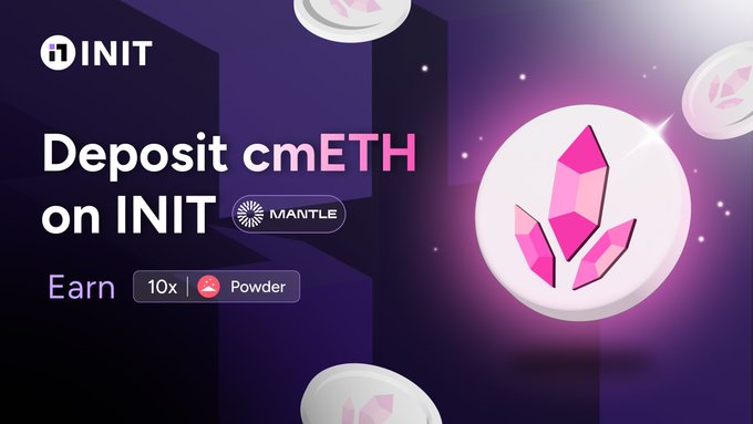 이더리움(ETH)에 대해 불 시장인가요? @mETH 프로토콜의 cmETH에 이더리움(ETH)을 재예치(restake)하여 3.4% 연간 수익률을 얻으세요. 메타모포시스 시즌 3 동안 INIT에 예금하여 10배 파우더 보너스를 받으세요. 오늘 $COOK 보상을 위한 파우더 적립을 시작하세요.