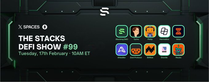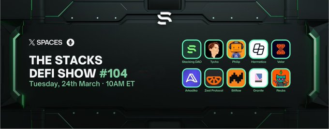 내일 오전 10시(미국 동부시간)에 열리는 @Stacks DeFi 쇼를 놓치지 마세요! 📆 이번 쇼에서는 주요 Stacks DeFi 앱들을 비롯한 다양한 앱들이 참여하여 새로운 소식을 공유하고, 더욱 개방적이고 참여도 높은 형식으로 진행될 예정입니다. ⏰ 알림을 설정해 두시면 놓치지 않고 시청하실 수 있습니다!