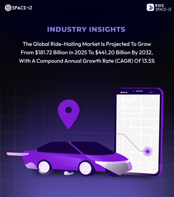 🚗 글로벌 승차 공유 시장은 2025년 1,817억 달러에서 2032년 4,412억 달러로 빠르게 성장하고 있습니다! 📈 13.5%의 연평균 성장률(CAGR)은 앞으로 엄청난 성장을 예고합니다. #모빌리티 #승차 공유 #미래교통 #스마트모빌리티