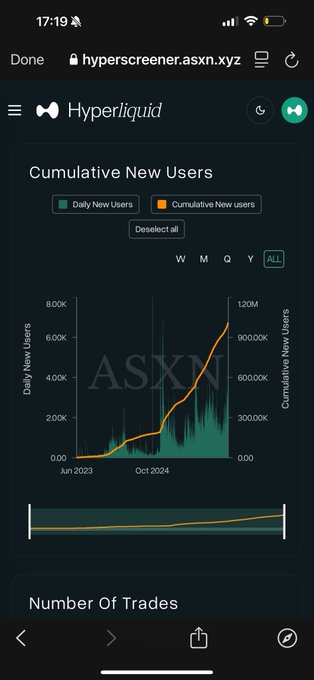 하이퍼리퀴드 월간 언락 물량이 2~3일간의 바이백으로 소진되고 있습니다. 지난 5개월간 누적 신규 사용자 수가 폭발적인 성장을 보이고 있습니다. 모든 금융의 중심지