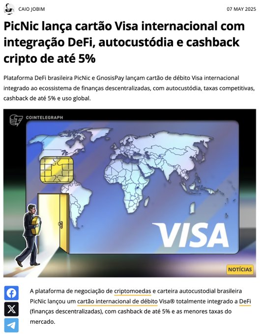 브라질의 디파이 플랫폼 <@usePicnic>과 <@gnosisPay>가 자체 보관, 경쟁력 있는 송금 요율, 최대 5%의 캐시백을 갖춘 비자 직불 카드 제품을 출시했습니다.