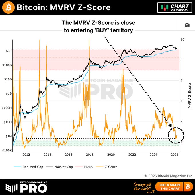 비트코인 MVRV Z-스코어가 '매수' 영역에 진입하기 직전입니다. 이 영역은 역사적으로 주요 시장 저점을 나타내는 구간입니다. 📊 이 지표는 비트코인의 시가총액과 실제 시가총액을 비교하여 시장이 통계적으로 저평가된 시점을 파악하는 데 도움을 줍니다. 🤓 이 차트에서 녹색 영역에 하락 거라고 생각하세요? 👇