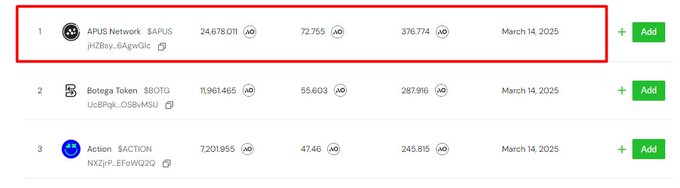$APUS는 @Permaswap에서 구매 및 판매가 가능합니다! 하지만 @fwdresearch @aoTheComputer 브릿지의 공정한 런칭 수익 위임을 통해 자본을 잃지 않고 $APUS를 민트할 수 있습니다! 아르이브(Arweave)의 민트(Mint) 페이지에서 직접 위임할 수 있습니다: ao.arweave.net/#/delegate 또는 당신은