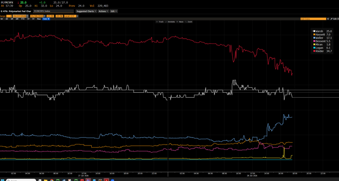 월러의 당선 가능성은 FOMC 회의 전 8.8%에서 폴리마켓 기준 현재 17.1%로 상승했습니다.