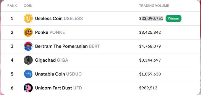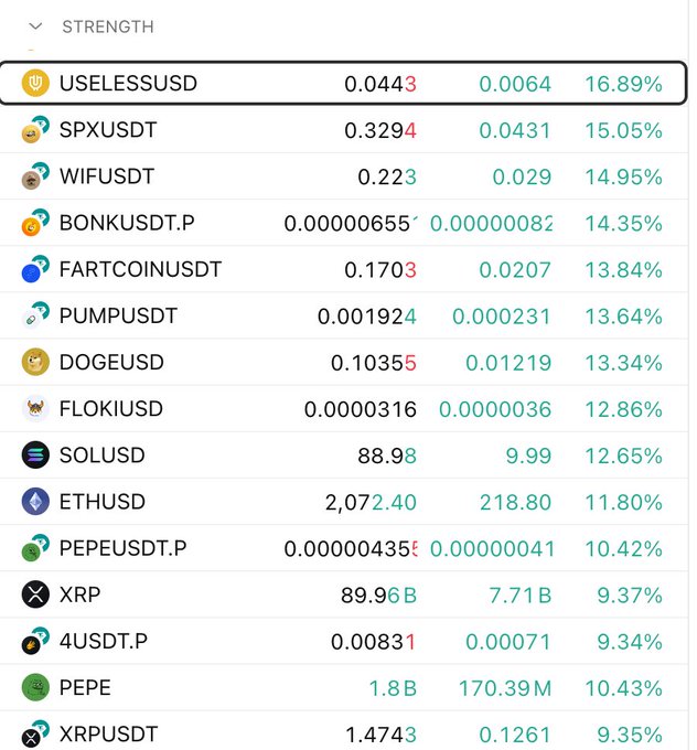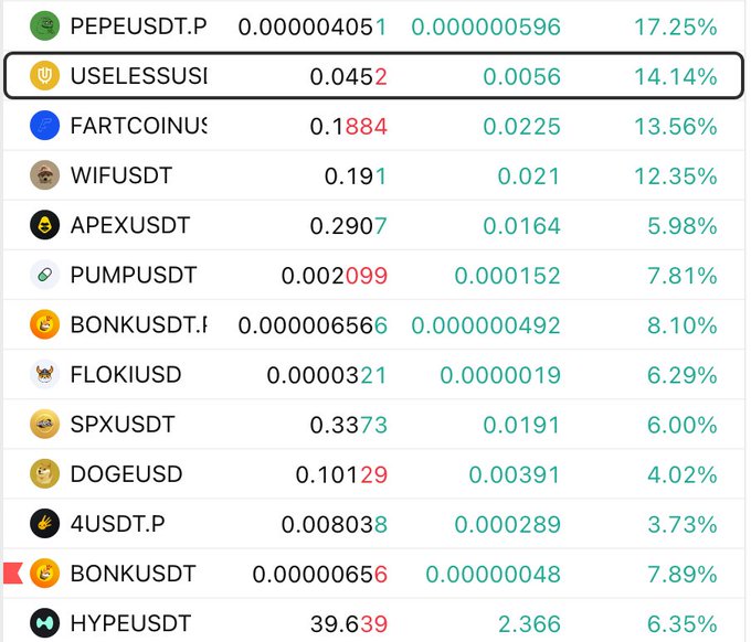 $USELESS 다시 한번 가장 빠른 말 현재 $SPX, $WIF, $BONK, $FARTCOIN, $ 도지코인(Doge) 이더리움 클래식(ETC) 함께 우수한 성과를 보이고 있습니다. 관찰하며... twitter.com/theunipcs/status/2...
