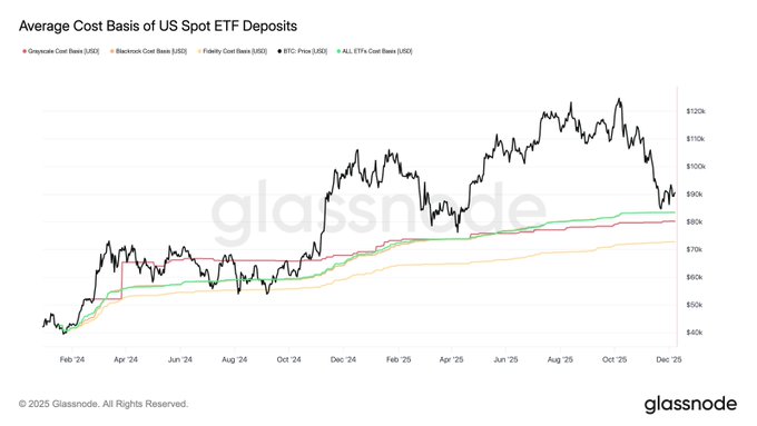 $BTC는 미국 현물 ETF의 평균 매입 단가 수준으로 되돌림했습니다. 이는 ETF 보유자 상당수가 이 지점에서 손익분기점에 도달했음을 의미합니다. 제 생각에는 이 구간이 중요합니다. 새로운 수요가 유입되거나, 보유자들이 위험을 재평가하면서 압력이 커질 수 있습니다. glassno.de/4pMradi