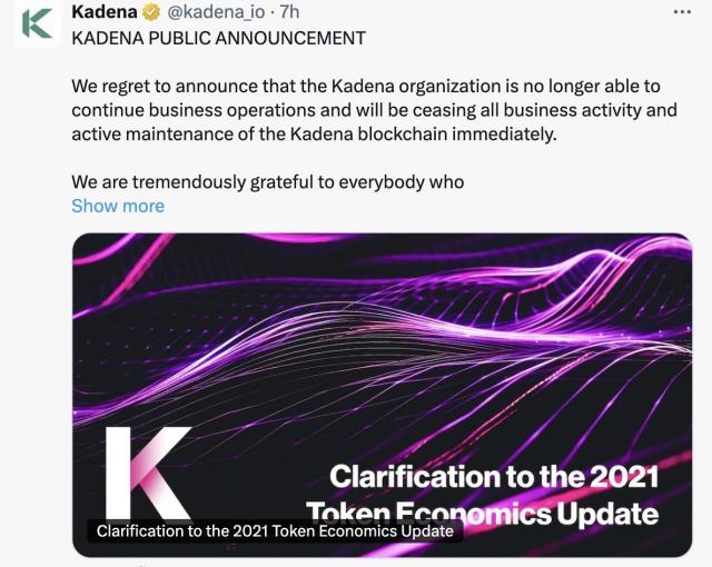 Kadena는 운영 중단을 발표했으며 KDA 토큰은 60 급락했습니다.