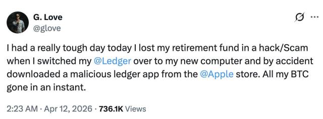앱스토어에 있는 가짜 레저 앱이 미국인 음악가로부터 59억 BTC를 빼돌렸습니다.