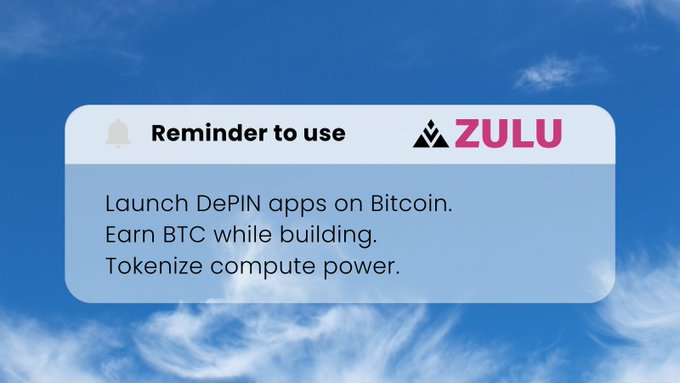 🔔 알림: 비트코인에 디핀(DePIN) 앱 구축 구축하면서 비트코인(BTC) 획득 컴퓨팅 파워 토큰화 @zulu_network가 이미 이를 수행하고 있습니다.