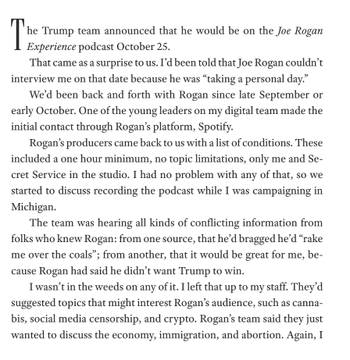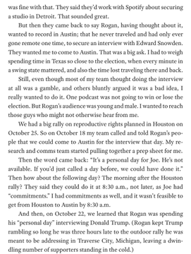 해리스는 자신의 책에서 로건과의 인터뷰 협상에 대한 자신의 입장을 밝힌다.