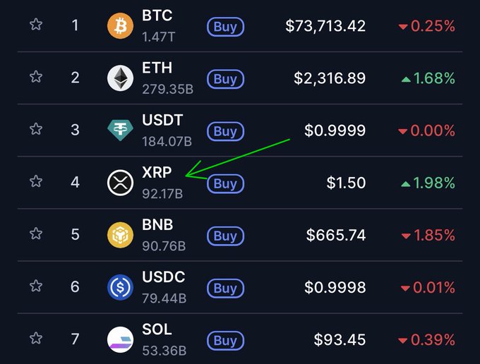 $XRP는 바이낸스 코인(BNB) 1.50달러에 거래하며 4번째로 큰 자산으로서의 자리를 되찾았습니다. 버틸 수 있을까?