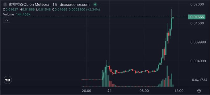 중국 밈(meme) 코인 열풍이 공식적으로 BSC → 솔라나(Solana) 로 옮겨갔습니다 🔥 온체인 데이터에 따르면 솔라나 기반 밈(meme) 코인 "索拉拉(솔랄라)"가 화제를 모으고 있습니다. 9,000명 이상의 보유자와 강력한 거래 모멘텀을 바탕으로 시가총액 1,600만 달러를 달성했습니다. ⚡️ 하지만 기억하세요. 항상 시작하기 전에 DYOR을 하세요.
