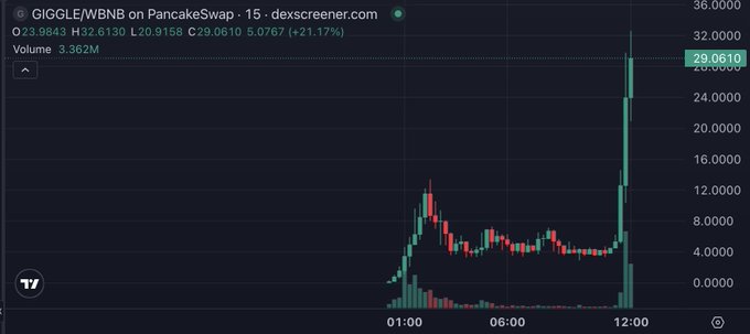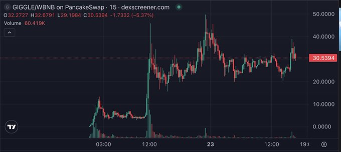 📊 BSC 최신 소식: "CZ의 Giggle Academy 기부" 밈(meme) 토큰 $GIGGLE이 12시간 만에 급등했습니다.🤯 시가총액이 2,730만 달러를 기록했고, 거래량은 30.25달러에 달하며 거래량 약 3,100만 달러였습니다. 🚀 보고서에 따르면, Giggle Academy 기부금의 약 90%가 밈(meme) 토큰에서 나왔으며, 그 중 대부분은 $GIGGLE의 초기 5% 세금을 통해 이루어졌습니다.