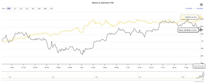 금값 3,500달러 돌파. 비트코인은 11만 달러에서 안정세. 둘 다 같은 맥락을 보여준다: 헤지 전략의 중요성. 금값, 연준 금리 인하와 안전자산 수요에 힘입어 상승. 비트코인은 ETF 자금 유입에 힘입어 상승. 금 = 지금 헤지. 비트코인 = 다음 헤지. 아니면 둘 다?