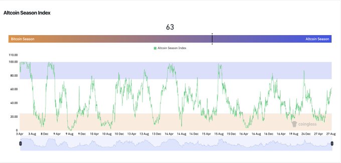 주가는 하락세. 비트코인(BTC) 11만 1천 달러로 유지. 알트코인은 상승. 이것이 디지털 자산의 첫 번째 진정한 순환일까요? S&P –1.5% | 비트코인(BTC) +1.6% | 이더리움(ETH) +2% 알트코인 시즌 지수 = 63. 암호화폐는 포트폴리오 로테이션을 보이고 있습니다: 비트코인(BTC) 헤지 수단으로, 알트코인은 전술적 베타 수단으로 활용합니다. 회전인가요, 아니면 노이즈인가요? 어떻게 생각하시나요?