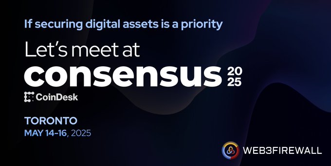 @web3firewall 주식회사는 아름다운 @토론토 도시에서 열리는 @코인데스크 #합의2025에 참석할 예정입니다. 디지털 자산 보안이 귀하에게 중요한 사항입니까? 만나봅시다! sales@web3firewall.xyz