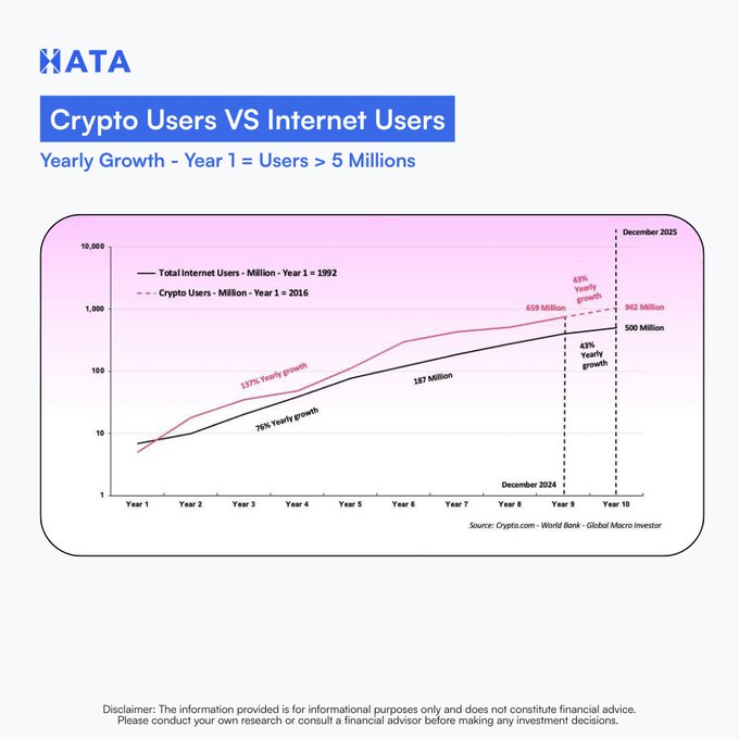 🗣️ Real Vision의 공동 창립자 라울 팔은 "이 산업은 인터넷보다 두 배 빠르게 성장하고 있으며 2030년까지 사용자 수가 40억 명에 달할 수 있다"고 말했습니다. 그의 모델은 2032년에서 2034년 사이에 시가총액이 약 100조 달러에 이를 것으로 예상하며, 이는 현재 규모의 25배가 넘는 수치입니다. 👀 암호화폐가 정말 100조 달러를 돌파할 수 있다고 생각하시나요?