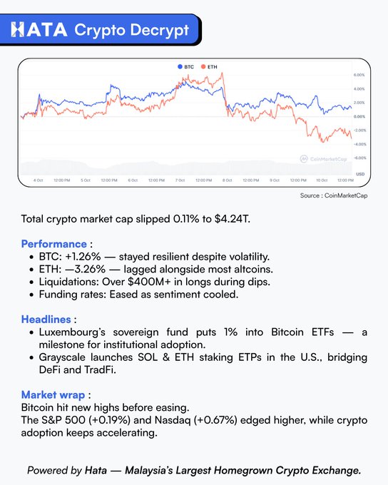GM(Good Morning). 이번 주 Hata Crypto 디크립트(Decrypt) 에 오신 것을 환영합니다! 시장은 전반적으로 차분했지만, 기관과 규제 기관의 주요 움직임은 앞으로 더 큰 변화의 토대를 마련할 수도 있습니다. 이번 주 요약에서 전체 내용을 확인하세요. 👇 면책 조항: 제공된 정보는 정보 제공용입니다.