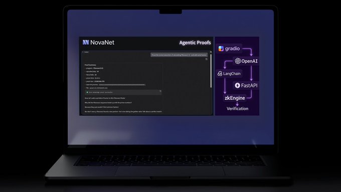 👀 한번 보세요 바이브 증명이 곧 제공됩니다 "유머와 함께 피보나치 12 계산의 정확한 실행 증명" 노바넷 ZKP는 AI 에이전트가 자language연어로 암호화 명을 생성할 수 있게 합니다 스택 포함: ➥ @LangChainAI ➤ @OpenAI ➤ @FastAPI ➤ @Gradio #AI