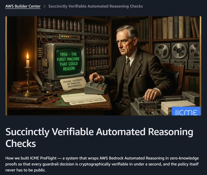 AWS Bedrock 자동 추론 기능을 영지식 증명으로 감싸는 @awscloud 서비스에 대해 알아보세요. 이제 모든 에이전트 가드레일 결정은 1초 이내에 암호학적으로 검증 가능하며, 정책은 비공개로 유지됩니다. builder.aws.com/content/3BM55s...…
