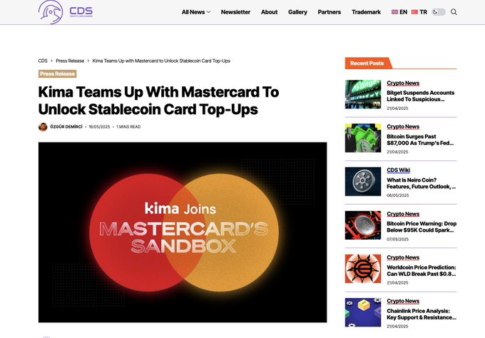 @cryptodataspace가 Kima의 마스터카드와의 통합을 소개해 주셔서 감사합니다! 마스터카드의 샌드박스에 통합됨으로써 자체 보관 지갑에서 직접 선불 카드에 대한 스테이블코인 충전을 원활하게 할 수 있게 되었습니다. 🔗 더 자세히 알아보기: 🇺🇸 cryptodataspace.com/kima-teams...… 🇹🇷