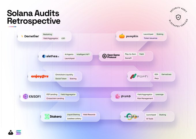 🛡️ 블록에이펙스: 솔라나(Solana) 생태계 검증됨 유동성 스테이킹 파생상품(LSD)과 AI 에이전트부터 수익 집계기 및 디파이 영구 선물 거래까지, 블록에이펙스 감사 배지가 이제 @솔라나 블록체인에 배포된 추가 프로젝트들을 보호합니다. 🔍 우리의 감사 하이라이트: - 포괄적인 러스트 스마트 계약 검토 -