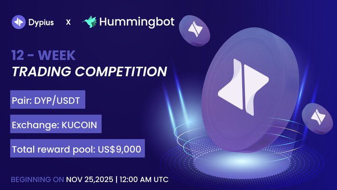 🚀 @kucoincom에서 @_hummingbot이 주최하는 $DYP 트레이딩 대회에 참여하세요! 총 상금 9,000달러가 걸려 있습니다. 현명하게 거래하고, 경쟁하여 순위표 상위권에 오르세요. 자세한 내용은 아래를 참조하세요 👇 support.hummingbot.io/miner/12...…