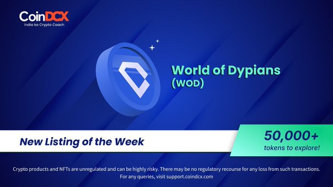 게임 시작! $WOD이 이제 CoinDCX에 상장되었습니다. 월드 오브 다이피안스는 게임, NFT, DeFi, AI를 하나의 가상 세계로 융합합니다. #CoinDCX상장 #CoinDCX에5만토큰상장 면책 조항: 암호화폐 상품 및 NFT는 비규제 아니며 매우 위험할 수 있습니다. 이러한 거래로 인한 손실에 대해 규제 기관의 구제책이 없을 수 있습니다. 문의 사항이 있으시면 http:/support.coindcx.com을 방문하세요.