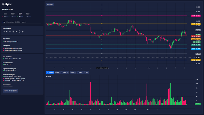 $ASTER 건설적인 상승 추세를 보이지만 단기적으로는 냉각될 가능성이 있습니다 😶🌫️ 추세는 긍정적으로 기울고 있습니다(스코어 22), MACD > 0, ADX > 25, 슈퍼트렌드 매수. 0.595/0.558 지지선을 주시하며 반등을 기대합니다. 상승 피벗은 0.654이며, 이를 돌파하면 0.72에서 시작하여 0.81까지 상승할 수 있습니다 🚀