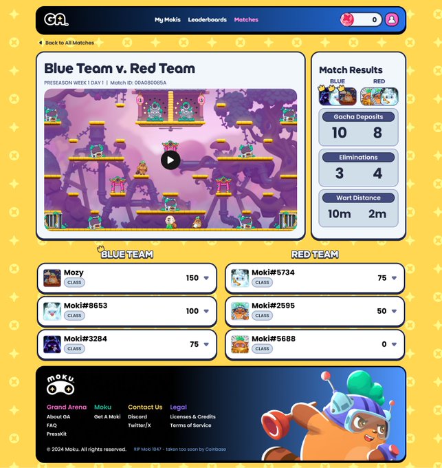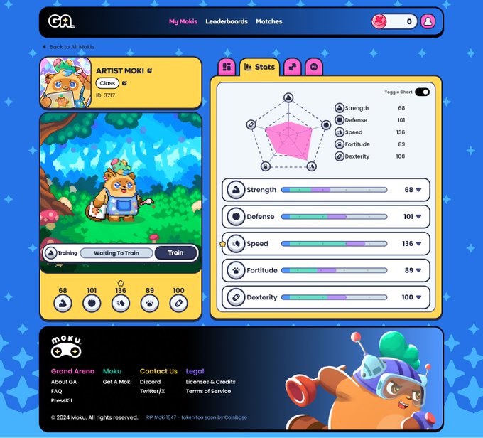 훈련이 진행되는 동안에도 Moki는 Moki Mayhem 경기에 계속 출전할 수 있지만, 해당 경기의 성적은 훈련 시작 전의 통계를 반영합니다. 훈련 세션이 완료되면 업데이트된 통계가 향후 경기에 적용됩니다.