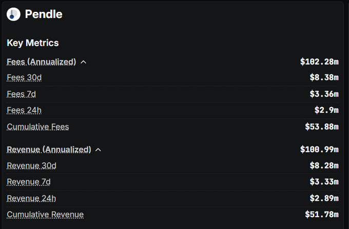 펜들(Pendle) 현재 연간 1억 달러 이상의 수익을 창출합니다. 꽤 비트(Bit) 돈이네요(!!!) 👏 비트(Bit) 우리의 다양한 수익 흐름에 대한 세부 내용을 알려드리겠습니다. 그러면 여러분이 우리가 무엇을 하고 있는지 볼 수 있을 겁니다. 펜들(Pendle)