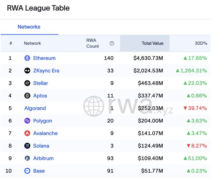 실물 자산 토큰화가 가속화되고 있습니다. 국채, 주식, 채권, 사모 신용, 상품, 부동산 등. 이더리움(ETH)이 주도적인 RWA 생태계입니다.