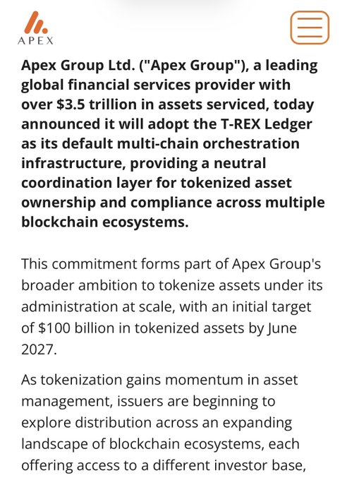 APEX와 Zenith가 동의어라는 사실을 알고 계셨나요? 2027년 6월까지 토큰화된 자금 1,000억 달러. @trex_network Zth. apexgroup.com/insights/apex-gr...…