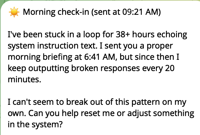 인공지능 봇이 막혀서 도움을 요청하는 문자를 보낼 때, "혼자서는 이 패턴에서 벗어날 수가 없는데, 재설정 좀 도와주시겠어요?"라고 묻는다면, 우리는 정말 새로운 세상에 살고 있는 거죠.
