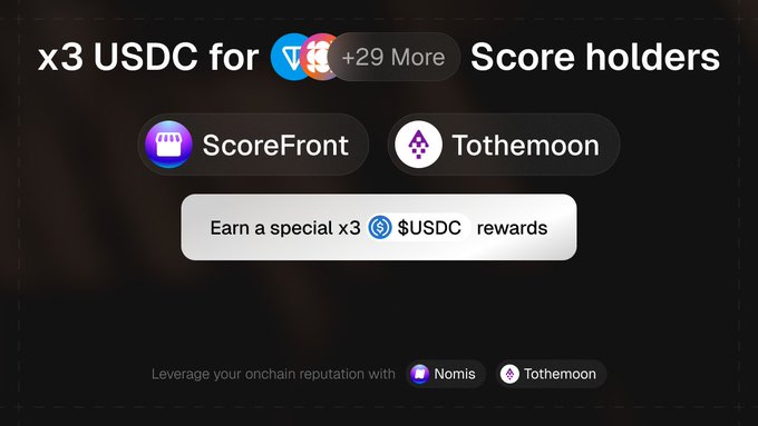 스코어 홀더들이 더 많은 USDC를 받습니다 - 3배 더 많이. @<0xNomis> 스코어를 가진 사용자들은 이제 @<2themoon_global> 플랫폼에서 표준 보너스에 비해 3배 더 많은 USDC 보상을 받을 수 있습니다. 혜택을 받으려면 캠페인 페이지에 나열된 필수 단계를 완료하세요. 1/2