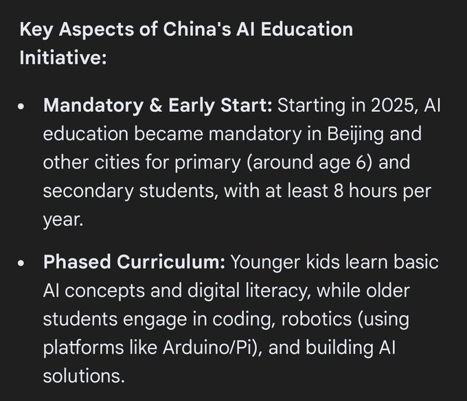 중국에서는 머신러닝 교육이 의무적이라고 하네요. 말 그대로 8살짜리 아이들에게 라즈베리 파이와 아두이노 사용법을 가르치고 있다고 합니다. twitter.com/hamptonism/status/...