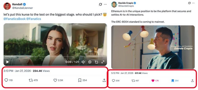 EF의 '기술' AI 출시 영상이 켄달 제너의 최근 영상보다 3배나 더 많은 조회수를 기록했습니다(24시간 만에). 이더리움 커뮤니티의 영향력을 과소평가하지 마세요. 그리고 @ethereumfndn이 이제 영상을 제작한다는 사실도 무시하지 마세요. 이건 전례 없는 영역입니다. 그리고 우리는 이제 막 시작했을 뿐입니다.