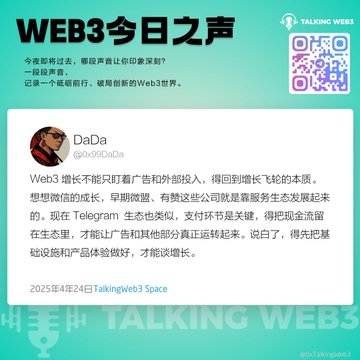 华语区第一个围绕 Web3定期举办的聊天类Space 节目时间:每周一至五,21 : 00(新加坡时间) 同步直播:@HTX_Live + @binance 官方电报:https://t.me/TalkingWeb3 合作DM:@0x99DaDa ➡️ 节目内容纯属嘉宾个人观点,不构成任何投资决策建议 ⬅️