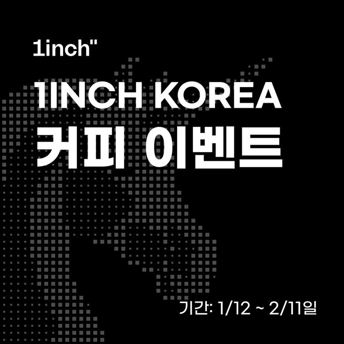 🔥 1inch Korea와 함께하는 커피 ☕️ 에어드랍 이벤트! 🙎♂️ 선착순으로 200명에게 커피 지급 📆 기간: 1/12 ~ 2/11