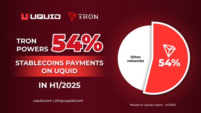트론(TRON) (@trondao)은 쇼핑의 미래를 이끌어갑니다. 🛒 @uquidcard에 따르면, 2025년 상반기 UQUID 거래의 54%가 트론(TRON) 에서 이루어졌습니다. 💸 수수료가 거의 0에 가깝습니다 ⚡ 즉시 결제 🛍️ 1억 7,800만 개 이상의 제품 📀 545,000개 이상의 디지털 아이템 실제 암호화폐 유틸리티는 이런 모습입니다.