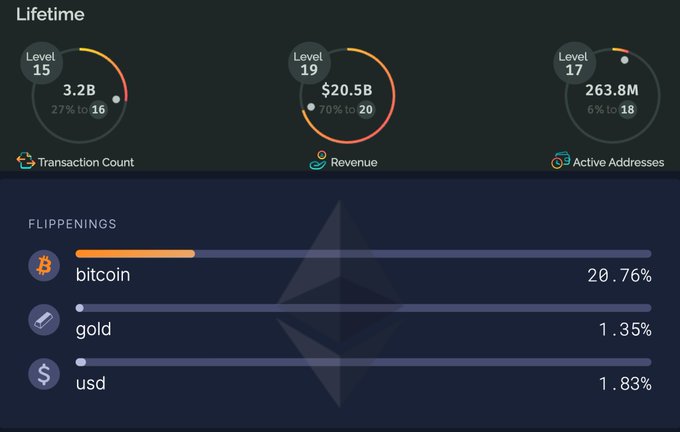 ➥ 가격보다 플리프닝(Flippening) 더 중요합니다 $ETH의 평가액은 오늘날 $BTC의 20.79%에 불과합니다. 역사적으로 이더리움(ETH) 현재와 같은 사용량 없이도 비트코인(BTC) 대비 50% 이상 높은 가격에 거래된 적이 여러 번 있었습니다. 오늘날 #이더리움은 다음과 같은 특징을 가지고 있습니다: - 32억 건의 거래 - 205억 달러 네트워크 매출 - 2억 6380만 개의 활성 주소 이미 이더리움(ETH) 가 있다면 twitter.com/Nick_Researcher/st...