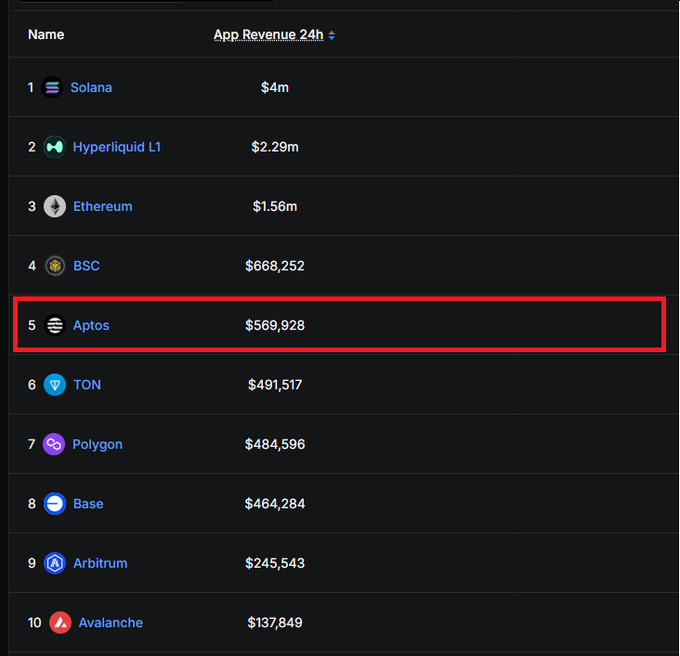 앱토스(Aptos) 의 일일 앱 수익이 56만 달러에 달해 모든 앱토스(Aptos) 체인 중 5위를 기록했습니다. 2026년에는 어떤 일들이 펼쳐질지 정말 기대됩니다. 앱토스(Aptos) 에서 더 많은 새로운 프로토콜이 출시되면서 생태계는 더욱 높은 수준으로 성장할 것으로 예상됩니다. twitter.com/0xAzin/status/2003...