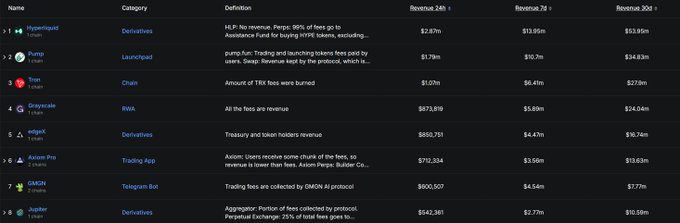 Hyperliquid는 24시간, 7일, 30일 동안 가장 많은 수익을 창출한 dApp 자리를 유지하고 있습니다. 24시간 만에, 이는 매출의 30%도 채 되지 않는 첫 번째 범죄자 지수(perp 탈중앙화 거래소(DEX) 를 훨씬 앞서고 있습니다. 참고로 수익의 99%는 $HYPE을 매입하는 데 사용되고 1%는 HLP에 사용됩니다.