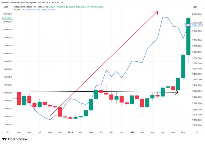 2018년 9월부터 2020년 7월까지(22개월) 금 가격은 66% 상승한 반면 비트코인은 보합세를 유지했습니다.