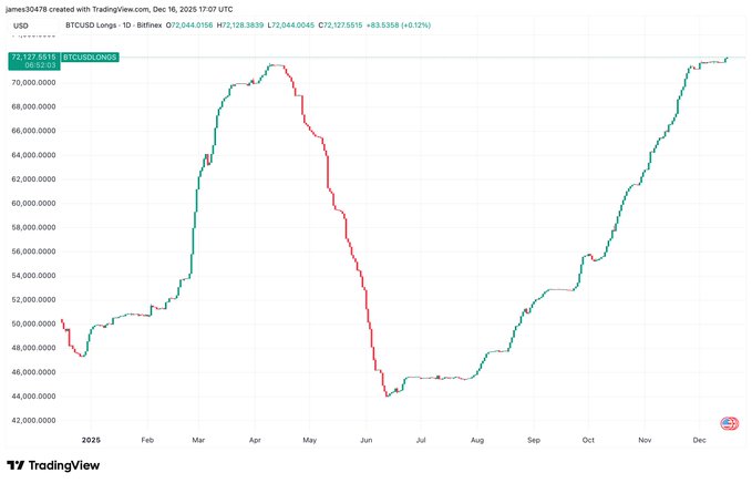 금은 2024년 12월 이후(13개월) 비트코인을 지속적으로 앞지르고 있습니다.