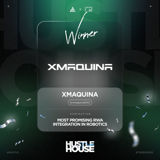 #HUSTL3 HOUSE 두바이에서 열린 Pitchster Battle에서 "최고의 RWA 통합"으로 선정되었습니다. 🏆 이 모든 것을 함께 만들어준 @cryptorsyio와 @Fibonacci_HFT에게 감사드립니다. 현실 세계의 자산과 현실 세계의 로봇이 만났습니다. 그리고, 이건 공상과학 소설이 아닙니다. twitter.com/xmaquinaDAO/status...
