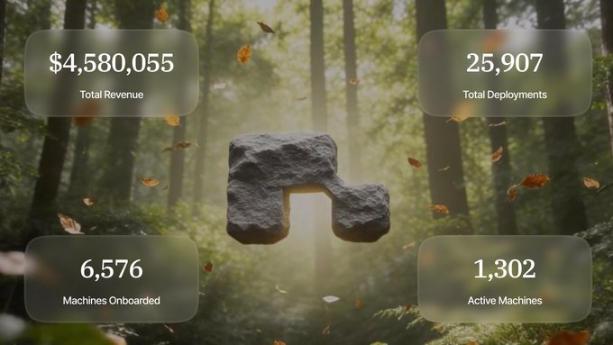 한 주를 올바른 에너지로 시작하는 것은 매우 중요합니다. 저희의 공식은 간단합니다. 구축하고, 배포하고, 반복하는 것입니다. 영원히. Build January의 마지막 주이지만, 그 기세는 꺾이지 않았습니다. NodeOps Network의 현재 상황은 다음과 같습니다. → 총 수익: $4,563,457 → 총 배포 건수: 25,749 → 온보딩된 머신: 6,342 → 활성 머신: 1,264 → 모든 지표가 온체인에 완벽하게 기록됨: http:/dune.com/nodeops/stats 주요 네트워크 지표는 아래에서 확인하세요 🔢👇🏻