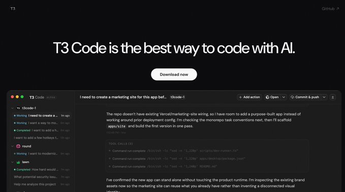 아, 깜빡! 유행어 클릭베이트를 넣는 걸 잊었네. 이 에이전트 오케스트레이션 코딩 앱이 내 인생을 바꿔놓았어. 클로드 코드? 죽었지. 커서? 2024년은 벌써 2년 전이야. 코덱스? 램 용량이 너무 큰 게 싫다면나 써. T3 코드는 영원한 하층민에서 벗어나는 가장 빠른 방법이야. twitter.com/theo/status/203011...