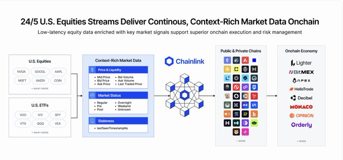 80조 달러 규모의 미국 주식 시장이 이제 체인링크(Chainlink) 통해 온체인으로 진입합니다. 체인링크(Chainlink) 데이터 스트림을 사용하면 프로토콜은 표준 미국 거래 시간 외에도 운영되는 주식 선물, 예측 시장 등과 같은 온체인 주식 시장을 구축할 수 있습니다. DeFi를 위한 대규모 잠금 해제 $S @SonicLabs 포함. 소닉을 기반으로 빌드하기 가장 좋은 시간! blog.chain.link/chainlink-24-5...… twitter.com/SonicEcosystem/sta...